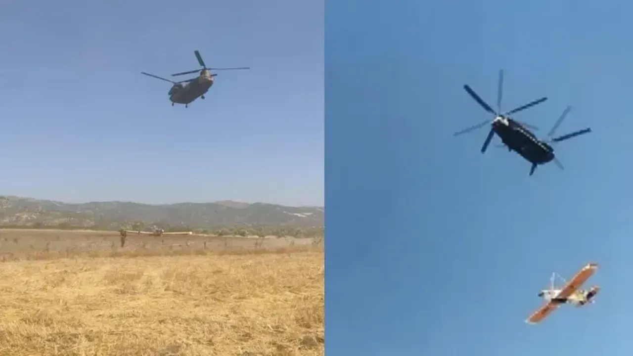 Muğla’nın Yatağan ilçesi Hacıbayramlar Mahallesi yakınlarında tarlaya acil iniş yaparak kaza kırıma uğrayan yangın söndürme uçağı, askeri helikopter ile olay yerinden kaldırıldı.