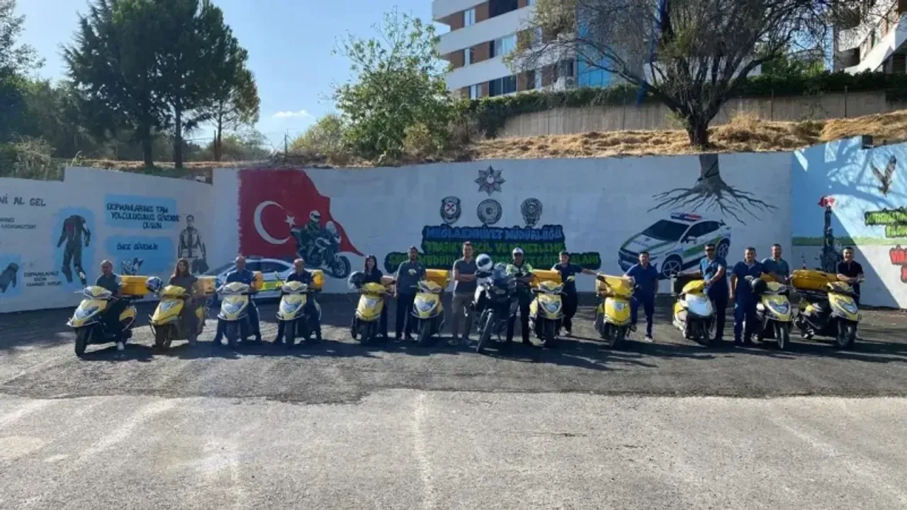 Muğla Trafik Tescil ve Denetleme Şube Müdürlüğü'ne bağlı motosikletli trafik eğitmeni Bekir Çırakoğlu, motosikletli kuryelere yönelik güvenli sürüş eğitimi verdi.