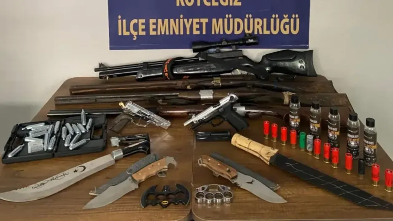 Muğla’nın Köyceğiz ilçesinde İlçe Emniyet Müdürlüğü ekipleri, bir şahsın iletişim uygulaması üzerinden silah satışı yaptığı bilgisine ulaştı. Bunun üzerine harekete geçen ekipler, şüpheli şahsın ikametinde arama yaptı. Yapılan aramada, 3 adet belgesiz av tüfeği, belgesiz havalı tüfek, belgesiz kurusıkı tabanca ve şarjörü, saçma atan havalı tabanca ve şarjörü, testere ağızlı pala, oluklu pala, 2 adet oluklu kasatura, 2 adet muşta, 13 adet tüfek kartuşu, 19 adet gaz tüpü ve saçma ele geçirdi. Şüpheli şahıs Uşak ilinde yakalandı