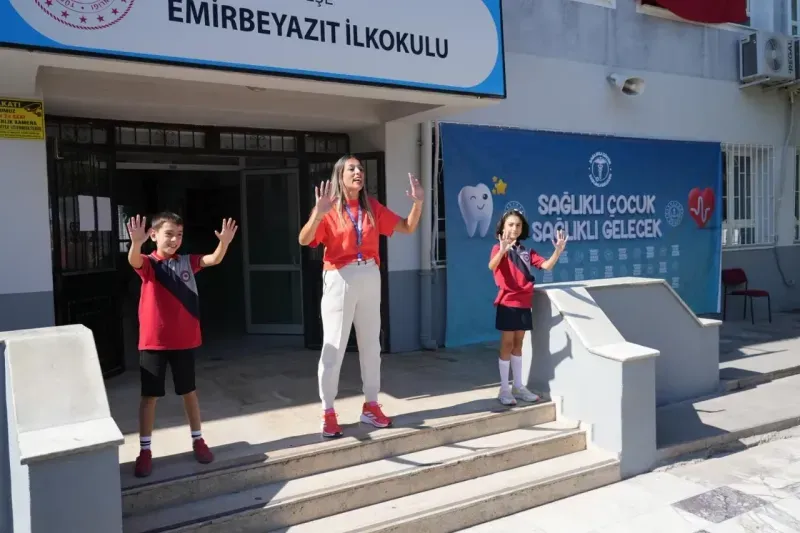Halk Sağlığı Haftası çerçevesinde “Sağlıklı Çocuk Sağlıklı Gelecek” projesi kapsamında Menteşe Emirbeyazıt İlkokulu’nda coşkulu bir etkinlik yapıldı. Muğla İl Millî Eğitim Müdürlüğü ve İl Sağlık Müdürlüğü iş birliğiyle gerçekleştirilen programda, okul bahçesi adeta bir sağlık kampüsüne dönüştü. Çocuklar, aile hekimliği, ağız ve diş sağlığı, sağlıklı beslenme, fiziksel aktivite, kişisel hijyen, bulaşıcı hastalıklardan korunma, 112 – ilkyardım, MEB AKUB-UMKE stantlarını ziyaret ederek uygulamalı eğitimler aldı.
