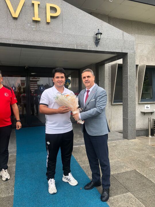 Karşılama törenine Muğla Gençlik ve Spor İl Müdürü Kazım Açıkbaş, Havalimanı Baş Müdürü Kemal Daştan, Havalimanı Destek Hizmetleri Müdürü Ersin Köksal, Milas Gençlik ve Spor İlçe Müdürü Durmuş Uslu, Yatağan Gençlik ve Spor İlçe Müdürü Kamuran Adalı, Spor Şube Müdürü Doğukan Doğan, Antrenör Dr. Ejder Sözen ve milli sporcu Hazal Burun katıldı.