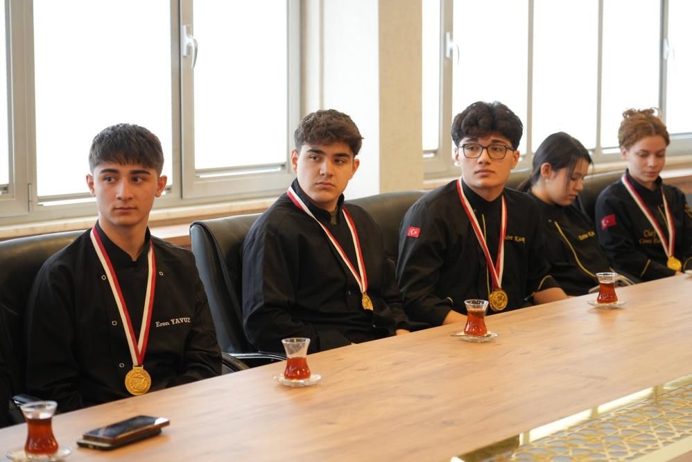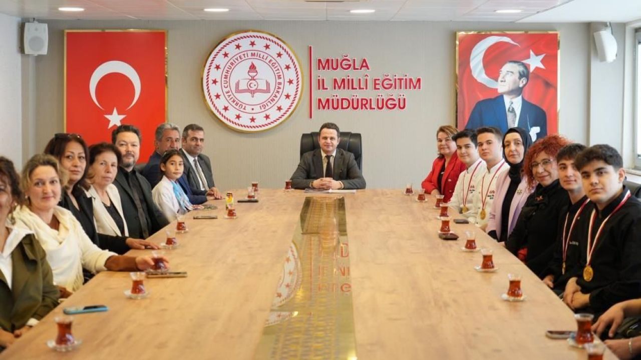 Muğla İl Milli Eğitim Müdürü Emre Çay, karate branşında dünya şampiyonluğu elde eden Asel Şahin ve gastronomi alanında madalyaları toplayan turizm lisesi öğrencilerini makamında ağırlayarak başarılarını kutladı.