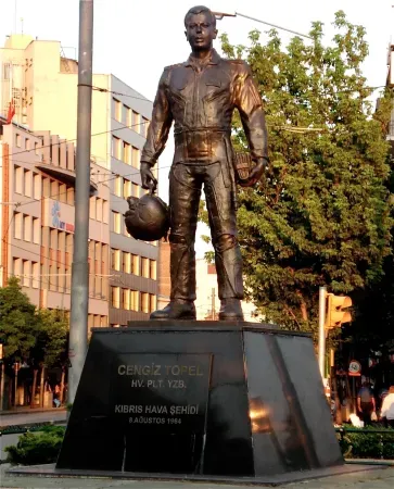 Türk Hava Kuvvetleri’nin 1964’te Kıbrıs’ta gerçekleştirdiği uyarı uçuşu sırasında Rumlar tarafından esir alınıp işkenceyle şehit edilen Pilot Yüzbaşı Cengiz Topel, Cumhuriyet tarihinin ilk hava harp şehidi olarak kayıtlara geçti. Kıbrıs Türkü’nün özgürlük mücadelesinde simge isimlerden biri haline gelen Topel’in adı bugün Türkiye ve Kuzey Kıbrıs’ta çok sayıda okul, cadde, sokak, park ve müzede yaşatılıyor.