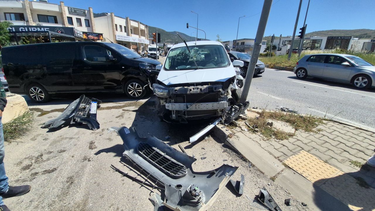 Kaza, Ortakent Bayraklı Kavşağı’nda meydana geldi. Edinilen bilgiye göre, Turgutreis yönüne giden Sahil Güvenlik aracı önce kavşakta dönüş yapan otomobile daha sonra kavşağın Kemer Sokak girişinde bekleyen VIP minibüse çarptı.
