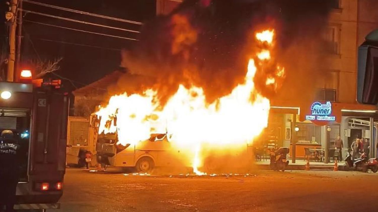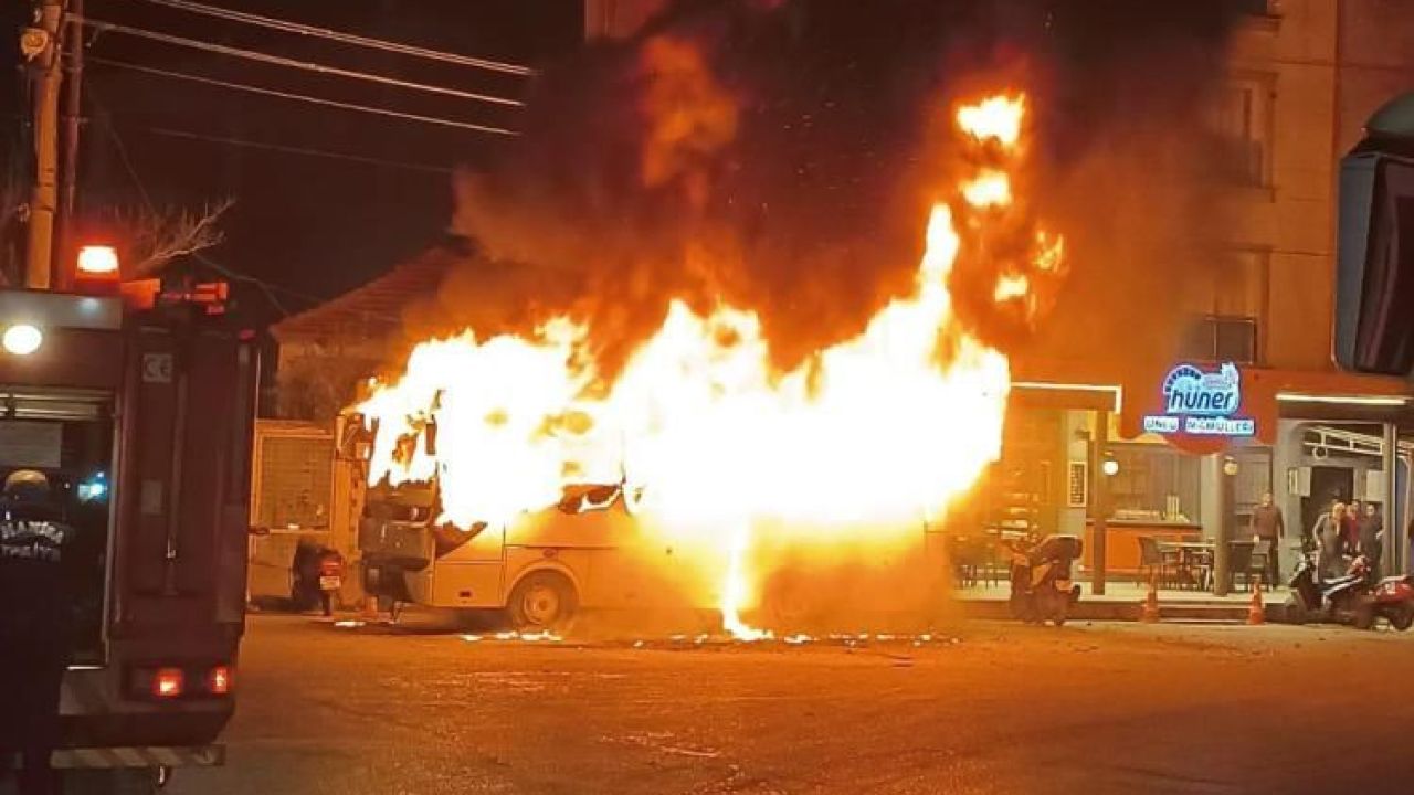 Manisa’nın Turgutlu ilçesinde işçi servisi olarak kullanılan bir otobüs, işçileri almaya gitmek üzereyken alev aldı. Otobüsün boş olması facianın önüne geçerken, yangında çevrede bulunan 4 motosiklet de hasar gördü.
