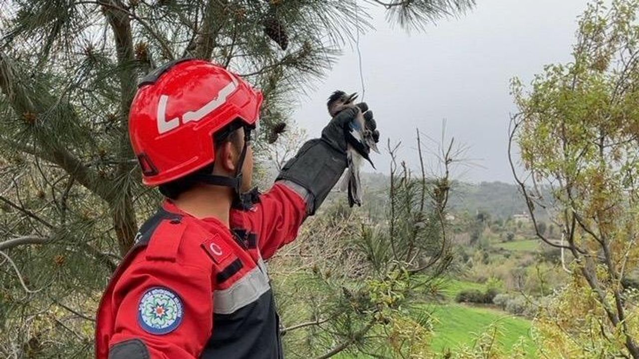 Vatandaşların fark etmesi üzerine durum, Muğla Büyükşehir Belediyesi Seydikemer İtfaiye Grup Amirliği ekiplerine bildirildi. Hızla olay yerine ulaşan itfaiye ekibi, çam ağacının yüksek dallarına takılarak mahsur kalan kuşu kurtardı.