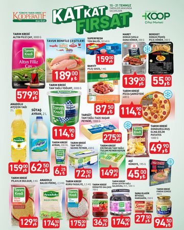 Tarım Kredi Market, her ay olduğu gibi Temmuz ayında da müşterilerini memnun edecek bir kampanyayla öne çıkıyor. Ürünlerin kalitesi kadar fiyatlarıyla da fark yaratan bu indirim döneminde; çaydan pilava, deterjandan yoğurda kadar onlarca ürün indirimli olarak sunuluyor. Kampanya, 21 Temmuz’a kadar Türkiye genelindeki tüm Kooperatif Market mağazalarında geçerli olacak.