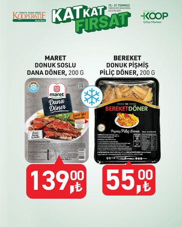 - Bereket Piliç Döner 200 G (Donuk Pişmiş): 55,00 TL