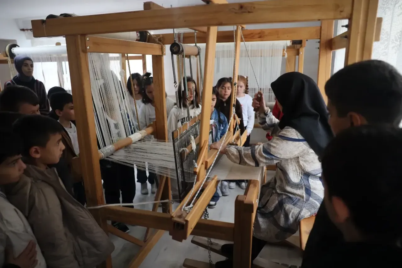 Etkinliğin ilk durağı, S.S. Merkez Menteşe Tarımsal Kalkınma Kooperatifi ortağı kadınların el emeği ürünlerinin sergilendiği Bayır Dastar Dokuma Atölyesi oldu. Öğrenciler, burada Muğla’nın geleneksel dokuması olan dastar ile tanışarak dokuma tezgâhında keyifle ilmek attılar.