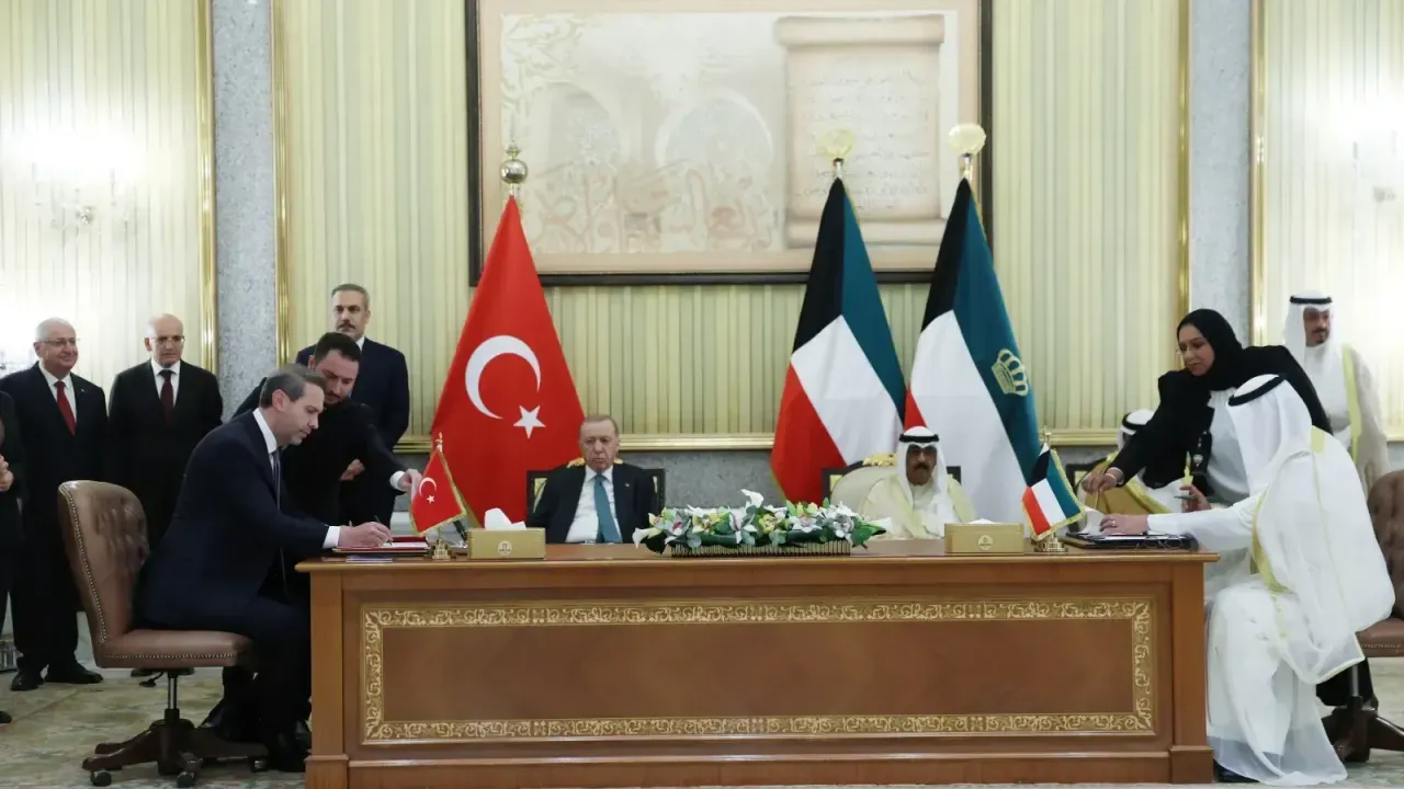 Cumhurbaşkanı Recep Tayyip Erdoğan, resmi ziyaret düzenlediği Kuveyt’te temaslarını sürdürüyor. Erdoğan, ikili ve heyetlerarası görüşme gerçekleştirdiği Kuveyt Emiri Şeyh Meşal el-Ahmed el-Cabir es-Sabah ile iki ülke arasında çeşitli anlaşmaların imzalandığı törene katıldı. Törende, Türkiye ile Kuveyt arasındaki Deniz Taşımacılığı Anlaşması ile Gemi Adamları Sertifikalarının Karşılıklı Tanınmasına İlişkin Mutabakat Zaptı Dışişleri Bakanı Hakan Fidan ile Kuveyt Devleti Başbakan Birinci Yardımcısı ve İçişleri Bakanı Şeyh Fahad Yusuf Saud es-Sabah tarafından imzalandı.