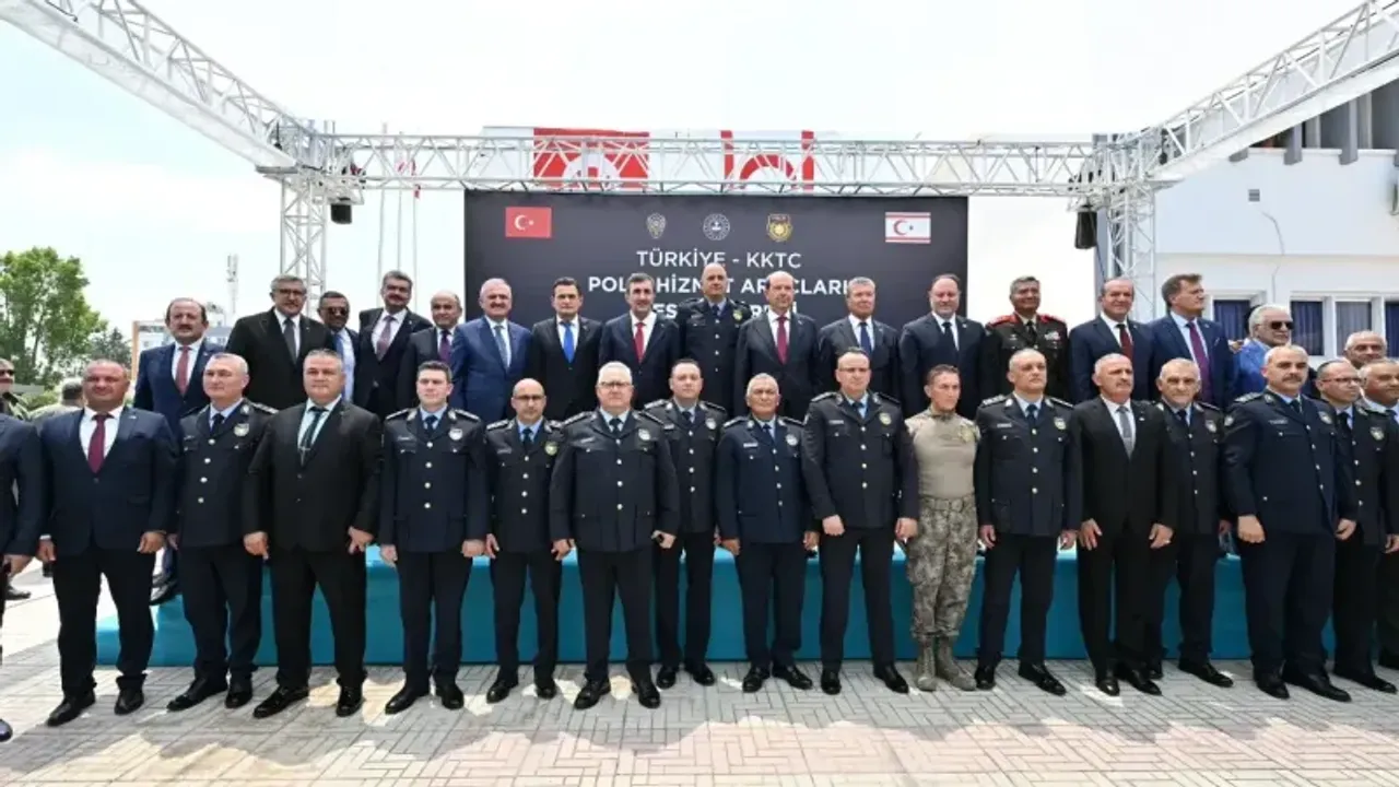 KKTC'de " Türkiye-KKTC Polis Hizmet Araçları Teslim Töreni" gerçekleştirildi. Bu kapsamda Türkiye'den KKTC İçişleri Bakanlığı’na 5'i itfaiye olmak üzere 29 araç hibe edildi. Törene KKTC Cumhurbaşkanı Ersin Tatar, KKTC Cumhuriyet Meclisi Başkanı Ziya Öztürkler, Cumhurbaşkanı Yardımcısı Cevdet Yılmaz, Başbakan Ünal Üstel, Türkiye'nin Lefkoşa Büyükelçisi Ali Murat Başçeri, İçişleri Bakan Yardımcısı Münir Karaloğlu, Güvenlik Kuvvetleri Komutanı Tümgeneral İlker Görgülü, bakanlar, milletvekilleri, Polis Genel Müdür Vekili Ali Adalıer, PGM’den yetkililer ile diğer yetkililer ve Türkiye’den gelen konuklar katıldı.