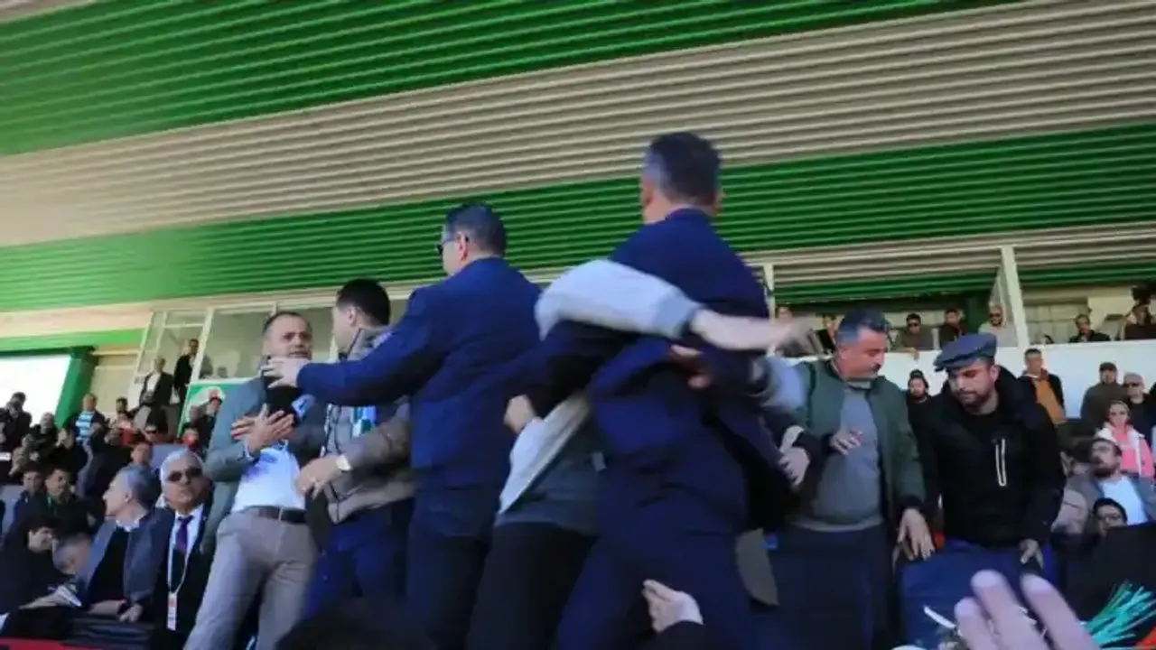 Muğlaspor kendi evinde ağırladığı Yatağanspor karşısında ilk yarıyı 1-0 önde tamamladı. İlk yarının son anlarında şeref tribününde başlayan sözlü tartışma bir anda kavgaya dönüştü. O anlar kameralara böyle yansıdı...