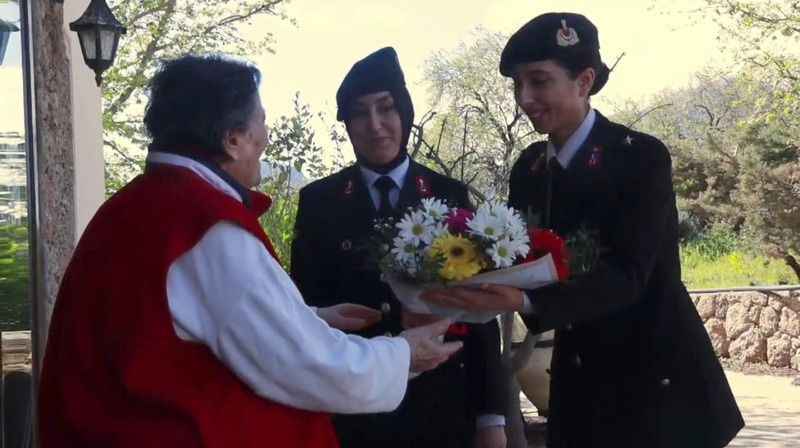 Muğla İl Jandarma Komutanlığı personeli 8 Mart Dünya Kadınlar Günü'nde Türkiye'nin ilk kadın subayı Emekli Muhabere Albay İnci Arcan'ı evinde ziyaret ettiler.