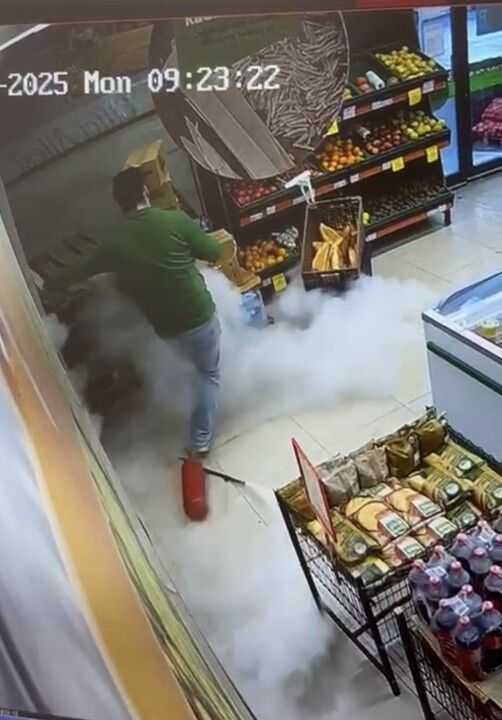 Üsküdar'da bir maket çalışanının kazara düşürdüğü yangın tüpünün boşalmasıyla marketi yoğun beyaz toz kapladı. Market çalışanı panikle kaçarken o anlar güvenlik kamerasına yansıdı.